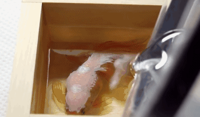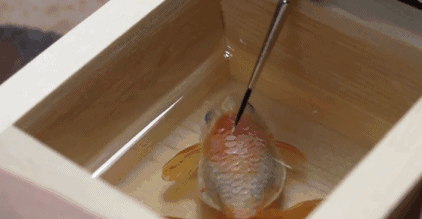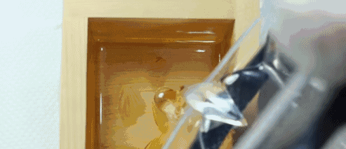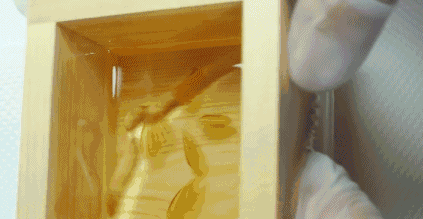 見證奇蹟的時刻!當樹脂再次沒過,金魚開始在木盒中有了活靈活現的感覺。